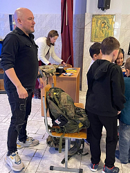 Второй частью стала лекция Петра Симченко, приглашенного гостя, инструктора по тактической медицине. Петр показал уникальные фото из передвижного мобильного госпиталя, рассказал о работе медиков на фронте. Он дал практические советы по оказанию первой помощи, показал снаряжение, с которым работают медики в полевых условиях. Все это вызвало неподдельный интерес и сопереживание как детей, так и взрослых.