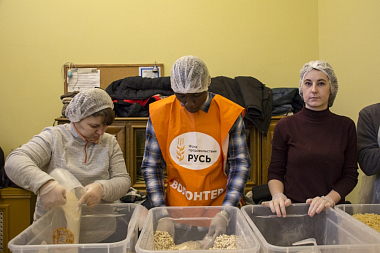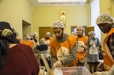 3 февраля 2019 года в трапезной ставропигиального женского монастыря Марфо-Мариинская обитель милосердия 27 добровольцев проекта «Народные обеды» собрали 220 продуктовых наборов для подопечных обители и Православной службы помощи «Милосердие».