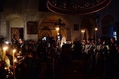 Вечером 1 марта 2017 года, в среду первой седмицы Великого поста, Святейший Патриарх Московский и всея Руси Кирилл совершил великое повечерие с чтением Великого покаянного канона прп. Андрея Критского в храме Воскресения Словущего Андреевского ставропигиального мужского монастыря Москвы.