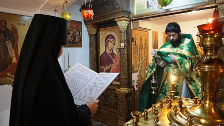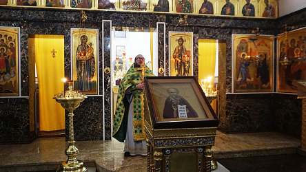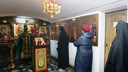 Утром иерей Владимир Зыков совершил Литургию в малом храме преподобного Саввы Освященного. Икону святого Саввы сестры украсили живыми цветами, которые в декабре еще цветут на территории подворья. Служба прошла радостно и благодатно. Казалось, что сам преподобный Савва Освященный молится вместе с батюшкой, сестрами и прихожанами. Дополняли это ощущение многочисленные иконы святых преподобных отцов Палестины, Сирии, Египта и Святой Руси, размещенные в храме на всех стенах. Византийское пение хора усилило это впечатление сопребывания со святыми монахами древности. В проповеди отец Владимир рассказал о житии преподобного Саввы в монашестве с восьмилетнего возраста до глубокой старости и поздравил всех с престольным праздником, который в этом храме отметили в девятнадцатый раз.