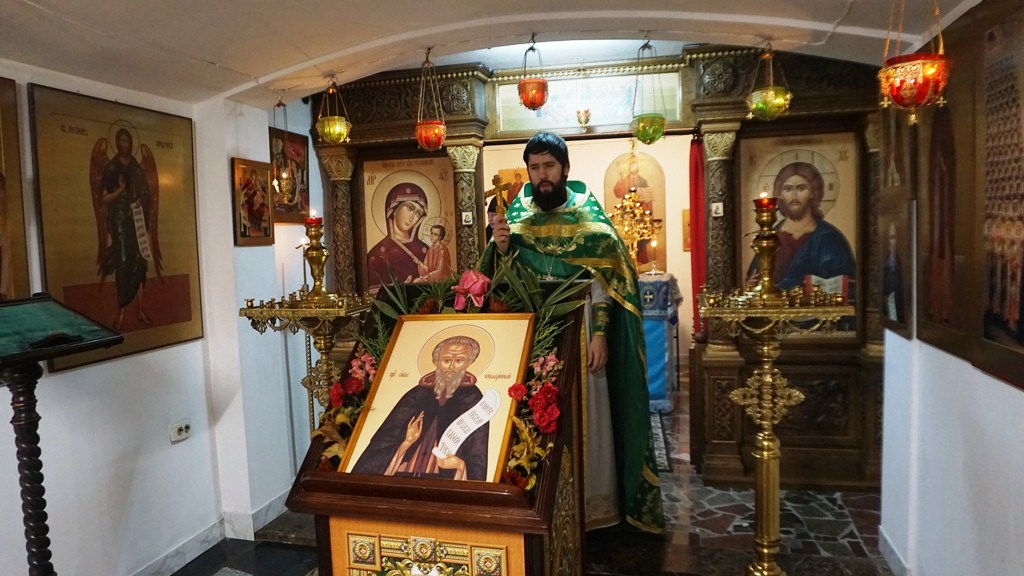 После Литургии и славления преподобному Савве Освященному иеромонах Феофан произнес проповедь о жизненном пути преподобного и его значении для монашества, Православия и для обители «Всецарица».