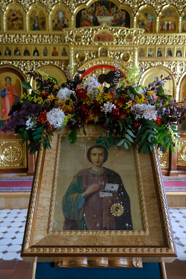В Русском на Афоне Пантелеимоновом монастыре в этот день совершается особое торжество, поскольку там почивает святая глава великомученика. В конце XIX века именно в этой обители были написаны для Акатовского монастыря две иконы: Божией Матери «Скоропослушница» и святого великомученика и целителя Пантелеимона.