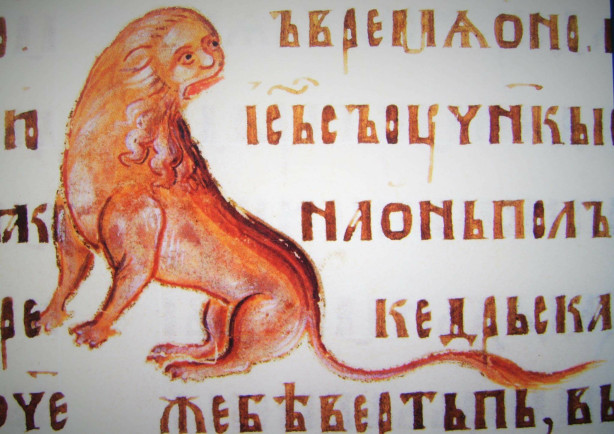 Первый семестр был посвящен работе акварелью. Самые первые занятия – рисованию отдельных элементов, взятых с икон или росписей. Например, какая-нибудь сабелька воина, или шапка князя, кустарник и домик с иконы XV века. Далее для цельных композиций идеально подошли самые простые древнерусские рисунки буквиц. Это копии буквиц преподобного Андрея Рублева: «Лев» и буквица «Цапля, ухватившая змею». Дело в том, что буквицы просты для копирования и в то же время интересны детям по смыслу и образу, ведь изображаются там, как правило, птицы и звери.
