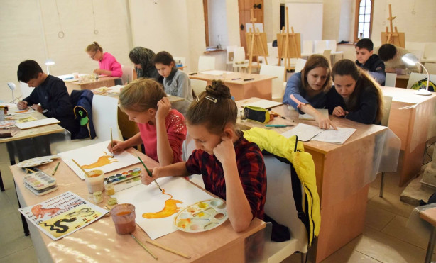 Но и сейчас ребята приходят в монастырь иногда не в воскресный день, когда проходят наши занятия, а в будни, просто так, небольшими группами, навестить меня после школьных уроков. Я в это время делаю росписи в монастырской трапезной, и дети имеют возможность посмотреть, как создается настенная композиция, помогают, держат палитру, наблюдают за процессом, задают вопросы. Я рассказываю им, как надо смешивать краску и проводить линии, а потом прекращаю работу, и мы идем пить чай. А иногда мы идем в храм, чтобы поставить свечи, и только потом – к столу. Время от времени я доверяю ребятам нарисовать какие-нибудь простые узоры на росписях не потому, что не успеваю, а чтобы у них остались приятные воспоминания, что они поучаствовали в важном деле. Это всё и есть, наверное, самые задушевные моменты в нашем изучении иконописи.