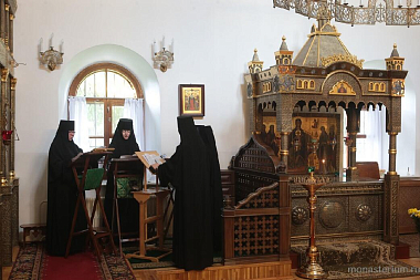 Перво-наперво стали восстанавливать корпус с трапезной внизу, кельями наверху и отдельным помещением – жильем для священника. И крохотный Петропавловский храм, сначала превращенный в спортивный зал, затем со временем оказавшийся без окон и дверей, без отопления. Два месяца мы ходили молиться в городской храм в Карабаново. Шли шесть километров пешком, в резиновых сапогах, в телогрейках, стараясь не обращать внимание на осенне-зимнее ненастье. Эти два месяца ушли у нас на восстановление храма, в котором пришлось тогда жить. 30 декабря храм освятили, и как начались в нем службы в предпоследний день 1993 года, так богослужения и совершаются в монастыре каждый день. Никогда они больше не прерывались… Сама я очень люблю клиросное послушание, люблю хор, но нередко с грустью думала, что в этой Владимирской глуши уж точно сестринского хора не будет. Видимо, думала я, придется смиряться и петь с бабушками без всяких красивых песнопений, совсем просто. И тут случилось чудо: прошло всего несколько месяцев и Великим постом, особо запомнившимся пургой и метелями, сюда друг за другом прибыли в качестве послушниц пять выпускниц музыкального училища из Вологды. Четверо из них сразу стали петь на клиросе. Духовные чада одного батюшки они приехали к нам по его благословению. Хор сложился сразу. Мы жили службами. Восстанавливать что-либо не могли, поскольку нам ничего не принадлежало – ни монастырская территория, ни здания на ней. И так прошло два года. Сестры обязательно бывали на полунощнице, утрене, Литургии, вечерне и повечерии. Три канона, трехсотница, Евангелие, Апостол, вечерние молитвы – все прочитывалось в храме, и тоже никто никогда не уклонялся. Такая сосредоточенность на службах, возможность усиленно молиться стали, можно сказать, той закваской или основой, которая держала монастырь, когда началось его восстановление с бурным строительством. Строительство нас не раздавило, поскольку мы сохранили внутренний стержень, заложенный в течение первых двух лет.