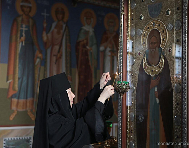 Виталий Иванович, пожалуй, года два отказывался, говоря, что он будет устанавливать коммуникации, очистные сооружения, помогать со строительством котельной – иными словами, решать хозяйственные вопросы. А купола золотить, говорил он, мол, другие люди найдутся. Когда нам стало совершенно невыносимо видеть остановленную стройку, сестры пошли среди строительных лесов, бетономешалок, мешков с цементов – поставили аналой, положили на него икону преподобного Сергия Радонежского, в честь которого храм был прежде освящен, и стали читать акафист Преподобному. Ходили туда каждое воскресенье в течение месяца. Просто читали акафист! После того, как они, наверное, раза четыре прочитали акафист, Виталий Иванович вдруг неожиданно согласился восстанавливать порушенную святыню. И за три года она была полностью восстановлена, восстала из небытия. Здесь, мы верим, помощь пришла от преподобного Сергия, побывавшего в нашей обители в гостях у преподобного Стефана, с которым его связывала духовная дружба.