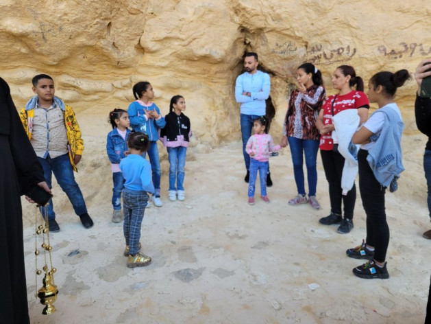 Разделение между Церквами не позволяет православным христианам вступать в евхаристическое общение с коптами, поэтому, к сожалению, при всей нашей взаимной любви мы не молимся вместе. Мы ни разу не были в коптских монастырях на Литургии. Нам давали возможность помолиться отдельно, предоставляя престол не в алтаре, а вынося его на центральное место в храме. Владыка – делегацию возглавлял епископ Сызранский и Шигонский Леонтий – брал с собой антиминс, на котором служил. И еще, в этом году Господь сподобил нас помолиться за Божественной литургией у пещеры преподобного Антония Великого.