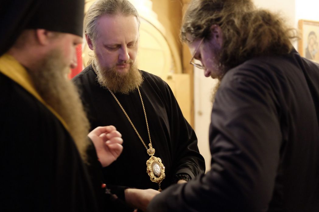 А разве это мешает? Мы же верим в то, что у Бога все живы?! Владыка Николай скончался 3 июня 2015 года на 89-м году жизни. Меня избрали во епископы 14 мая 2018 года. Впереди был день Святой Троицы, и Святейший Патриарх Кирилл сказал мне: «Давай твою хиротонию не будем совершать на Троицу, а рукоположим тебя через неделю в Храме Христа Спасителя». Мне стало грустно, потому что на Троицу хиротония состоялась бы в Троице-Сергиевой лавре, где я учился в Московских духовных школах и весной 2010 года был пострижен в монашество. Погрустил я немножко, потом подумал: а ведь это будет 3 июня, на третью годовщину кончины владыки Николая! Помню, как после моей архиерейской хиротонии мы собрались вечером на приходе в Митине. Отслужили молебен. Сидим – чай пьем, общаемся. Народу собралось много. Вдруг появляются люди из Ижевска и преподносят мне панагию и крест, «двойник» богослужебный, с котором владыка Николай служил последние лет пятнадцать. (Только на время поста и на пасхальный период он использовал два других комплекта). Еще мне в тот день передали его посох. В последующие месяцы передали его икону, мантию, епитрахиль. А вчера вот три комплекта архиерейского облачения 80-х годов получил я в дар от митрополита Николая.