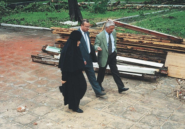 Как-то я поехала на выходные на подворье в село Марково, приезжаю через два дня, а на месте, где сейчас гостиница, тракторы, техника стоит, во всю котлован роют. Наверное, 10х8 метров – такой большой был котлован. И я из машины вышла и сразу туда, в яму, даже не помню, как оказалась на дне, прямо в котловане. Требовала от рабочих разрешение, спрашивала, кто им дал согласование: у нас земля была оформлена, уже акт вышел безвозмездного пользования этой территорией. И я просила показать бумаги, кто им согласовал работы. Мобильных телефонов тогда еще не было, но уже позвонили во все инстанции, (наверное, даже в Правительство) – тут же приехали из Центрального округа, Управы, инспекции... Выяснилось, что никаких согласований с монастырем не было, и инспекция сказала, чтобы технику убрали; всех уговорили, все уехали, меня на веревках вытащили из котлована.