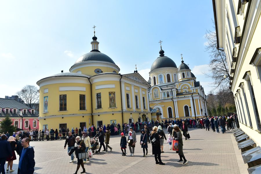 Монастырь открыт каждый день с 7.00 утра до 20.00 вечера. Многие москвичи приезжают к мощам утром, до работы, или после работы, просят помощи. Утром по субботам и воскресеньям бывает особенно много автобусов из регионов, люди с 4 утра занимают очередь. И так – с ранней весны до поздней осени. Поэтому стоять приходится долго, и, если есть возможность, лучше приезжать в другой день. Например, в будние дни к вечеру, после 18-19 часов. В 20.00 мы закрываем ворота на вход, а те, кто уже на территории, обязательно приложатся к мощам, даже если очередь еще большая. Бывает, последние паломники уходят в 22-23 часа.