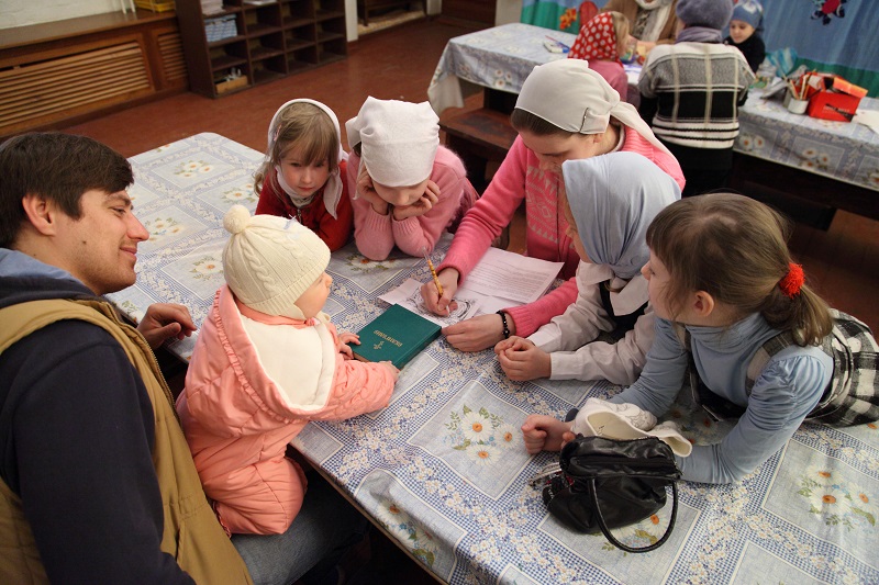 Воскресная школа действует уже более двадцати лет, с 1992 года. И правильно будет сказать, что выпускников у нас нет – мы все учимся... Мало кто уходит «во взрослую жизнь» насовсем. Те, кто освоил программу по основным предметам, так или иначе возвращаются: кто-то помогает в преподавании, кто-то – по хозяйству, кто-то просто приходит, чтобы снова здесь побыть, пообщаться.