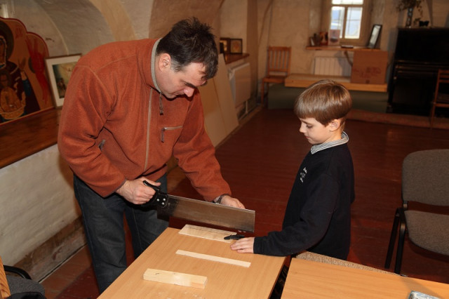 Наши первые воспитанники, ныне – усердные прихожане обители, уже приводят к нам своих детишек, и это особенно радует. Сейчас в школе около полусотни учеников до 16 лет; есть несколько творческих разновозрастных групп. Большинство вновь поступающих ребятишек совсем еще маленькие, им по три-четыре года. Нередко вслед за своими детьми в храм приходят и родители, что очень важно.