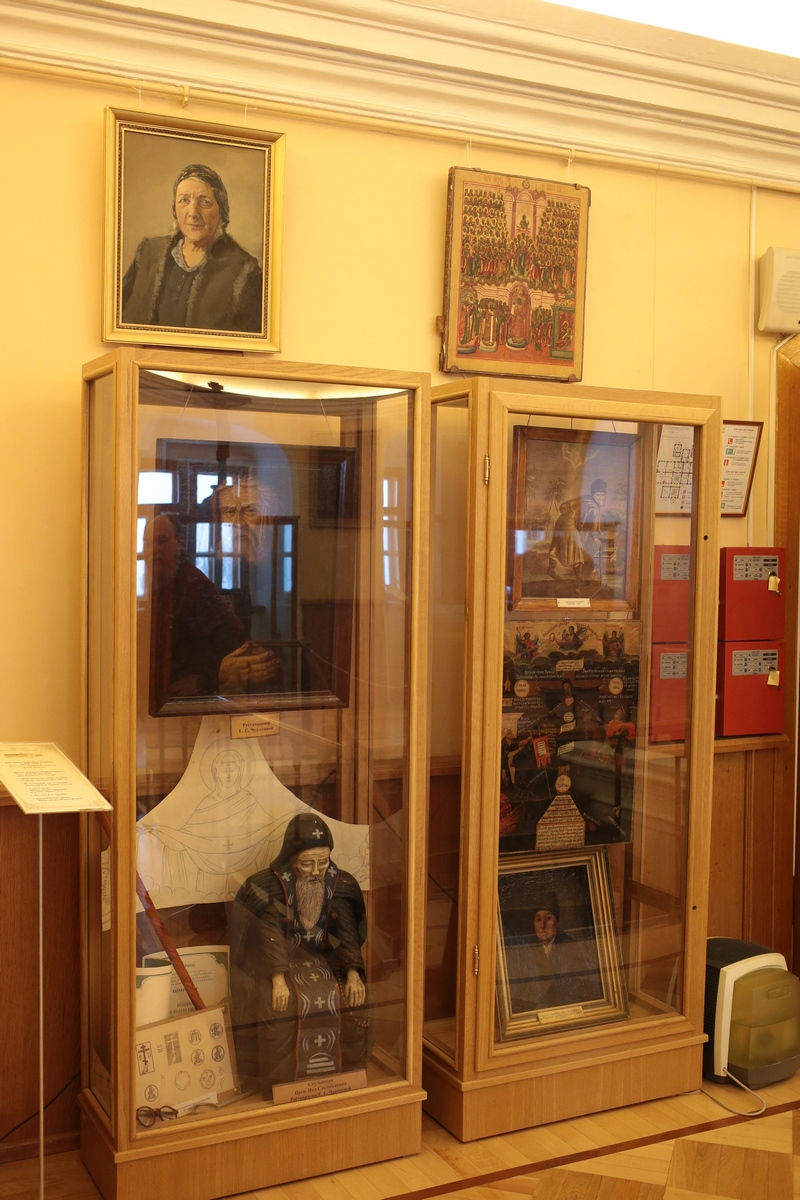 Какой экспонат, какую реликвию здесь ни возьми, сразу понимаешь: это богатейший пласт нашей истории – трудной, зачастую противоречивой, требующей глубокого осмысления с тем, чтобы, понимая прошлое, мы душой устремлялись в будущее. Если перейти из этого зала в следующий, то ваш взгляд непременно упадет на скульптуру святителя Луки (Войно-Ясенецкого), уникальную в своем роде, потому что скульптор Олейников лепил ее не по фотографиям, не по чьим-то воспоминаниям, а с натуры. Святитель Лука, ученый-хирург с мировым именем, был уже в то время епископом, когда скульптор принялся за работу. У нас даже есть снимок, запечатлевший рабочий момент! Но что особенно интересно: в одном углу зала – скульптура Святителя, в другом – письменный стол Святейшего Патриарха Алексия (Симанского) и некоторые мемориальные вещи Его Святейшества. А ведь отношения между ними были непростые, даже тяжелые...