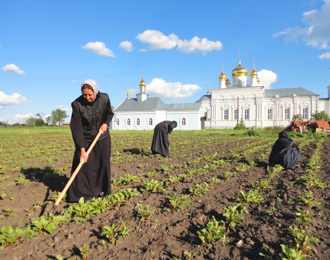 Скитское хозяйство немалое, оно питает наш монастырь. На скитских полях возделываются зерновые культуры: пшеница, ячмень, овес. Мы выращиваем картофель, разнообразные овощи, есть свой яблоневый сад, есть пасека, коровник и курятник.