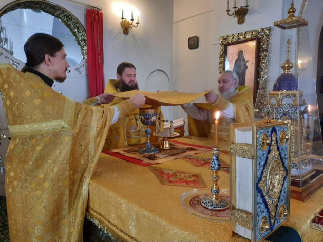 Но вернемся к нашим дням. В 2019 году по благословению митрополита Феофана Казанского и Татарстанского при содействии благотворителей нами была заказана большая икона «Собор Оптинских старцев», с отработанной иконографией, которая пишется во Введенском ставропигиальном мужском монастыре Оптина пустынь. Поскольку монастырь ставропигиальный, то было подано прошение в Московскую Патриархию о выделении частичек мощей Оптинских старцев. В сентябре этого года на имя владыки Феофана пришло письмо за подписью председателя Синодального отдела по монастырям и монашеству архиепископа Каширского Феогноста, в котором сообщалось, что Святейший Патриарх Московский и всея Руси Кирилл дал свое благословение. Мы с радостью отправились в Оптину пустынь, где встретились с ее наместником, епископом Леонидом, и в дар от Раифского монастыря передали моей дорогой альма матер икону преподобного Гавриила Седмиезерного с мощевиком. Богу было угодно, чтобы прибытие мощей в Раифу и написание иконы пришлись на Собор Оптинских старцев. Икону мы торжественно освятили, совершили молебен и определили для нее место в пятиглавом Троицком соборе, справа от входа.