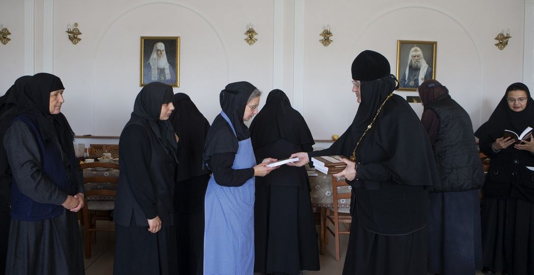Беседы мы проводим, может быть, не так часто, как хотелось бы, но собираемся на совместный разговор или чтение. Читаем в основном святоотеческую литературу. Также после монашеских конференций знакомимся с наиболее интересными докладами, касающимися насущных вопросов нашей жизни. Из особенно запомнившихся, например, выступление игумении Домники (Коробейниковой) о том, как нести послушание с любовью. Или владыки Святогорского Арсения… В последнее время вышел цикл книг архимандрита Эмилиана (Вафидиса), которые очень глубоко вскрывают проблемы монашества, мы обсуждаем их после прочтения, исходя из нашей внутренней жизни в обители. За трапезой мы не столько житийную литературу читаем, сколько святоотеческую, в надежде на то, что сестры, услышав что-то полезное для себя, захотят взять книгу в библиотеке и прочитать повнимательнее.