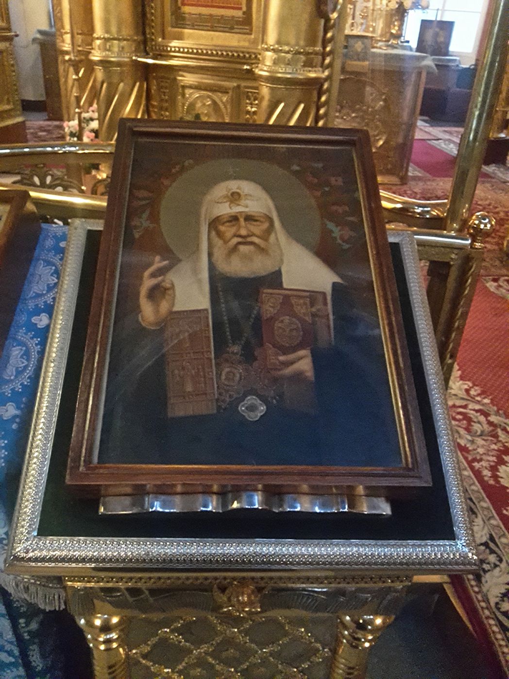 Икона была готова, отец Мефодий сделал киот и серебряный мощевик, и оставалось только освятить образ и вставить святые мощи. Накануне в Никольском храме мы оба служили Литургию с архимандритом Адрианом. Во время службы икона святителя стояла на Горнем месте, а мощевик с его честными мощами лежал на престоле.