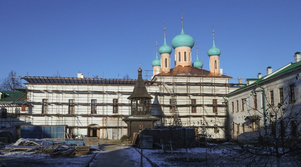 …Когда только начинала первые шаги здесь делать, конечно, ужасало всё. Разруха, нет водопровода, водоотведения, отопления. Монастырь не был огорожен, сюда когда угодно мог проникнуть любой человек. Но это, так сказать, одна проблема. Даже если хочешь приступить к ремонту и строительству, – невозможно: земля юридически не оформлена, здания не все переданы… Первые три года были просто мытарствами. У властей мои попытки что-то упорядочить и узаконить вызывали чаще всего раздражение и гнев. Бывало, заходишь в очередной кабинет, а в тебя бросают документы, вызывают на конфликт. Когда я попыталась сделать временное ограждение, меня чуть во вредительстве не обвинили… Как реагировать, как остаться после этого человеком? Приходилось буквально юродствовать: ухожу, и завтра заново прихожу, и послезавтра… Чувствуешь себя прахом, который все попирают. Или Дон Кихотом перед ветряными мельницами. Машины нет, постоянные поездки в Ярославль и в Москву – своим ходом, на автобусе, на электричке. Утром рано уезжала, вечером приезжала, «оттаивала» – зимы выдались очень холодные…
