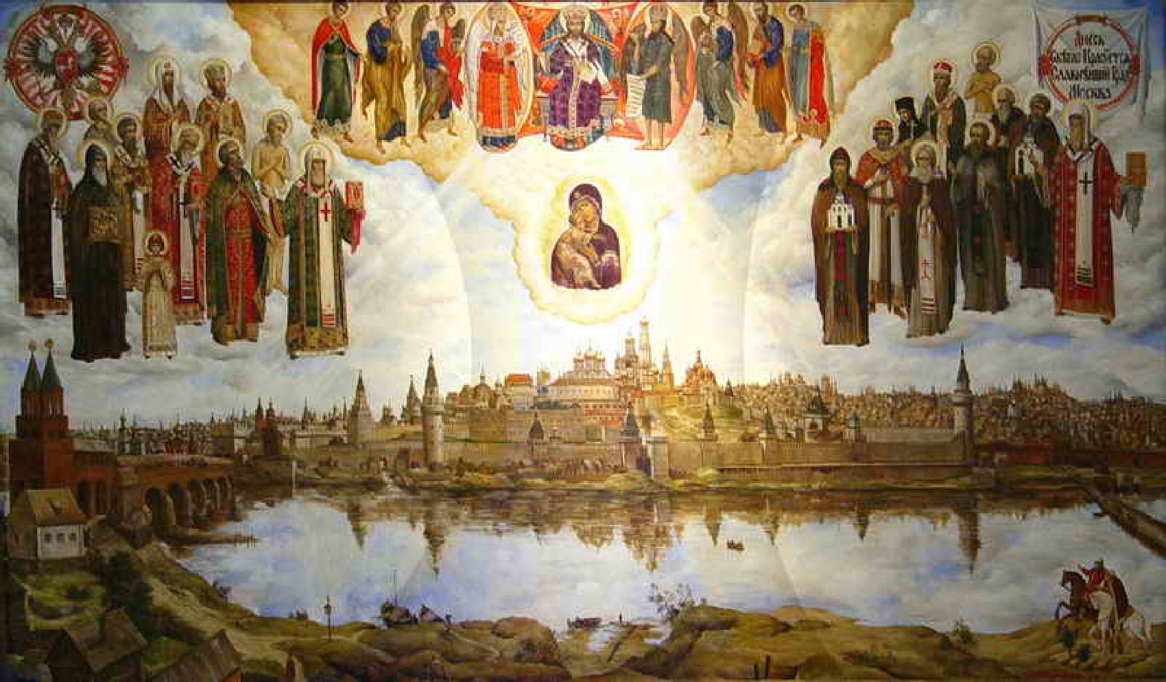 У меня картины без какого-либо подтекста или глубинного смысла. В них все наружу. Зритель, смотри, как это красиво! Мои картины – это, можно сказать, плакаты. Я картины превратил в плакаты, которые призывают человека войти в этот прекрасный мир, мир Церкви, мир веры. Войти, а там уже потом разбираться. Эти мои картины нужно было бы повесить в притворе церкви, перед храмом, как призыв: человек, иди туда, а там тебе всё расскажут! Только надо слушать хорошо и стараться видеть всё духовным зрением – оно у тебя есть и оно откроется. Надо лишь совершать эту работу, чтобы принять все это в себя. Потихоньку, нужно терпение, это на самом деле, очень тяжелая работа – молиться Богу, молить Бога, чтобы он сделал из нас людей.