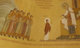 Сегодня мы молитвенно созерцаем, как рожденная по обетованию от святых своих родителей, праведных Иоакима и Анны, трехлетняя Богоотроковица поднимается по таинственным ступеням храма во Святая Святых. «Ангелы и человецы, Девы вхождение почтим, яко со славою вниде во Святая Святых». Тут и радостные благочестивые родители. Здесь ее ровесницы и юные девы с цветами в руках. И первосвященник Захария, отец Иоанна Крестителя, удивленный и, по внушению Духа Божия, введший маленькую Марию в ту внутреннюю часть храма, куда и он сам-то входил только один раз в год.