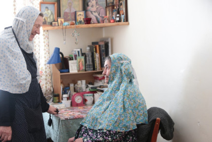– Вообще-то наших опекаемых можно назвать долгожителями, – говорит монахиня Феогноста (Шанина), несущая послушание старшей по богадельне. – Уходят домой, к Господу, в Небесное Отечество, перешагнув девятый десяток. Мать Тихона (Угрюмова) скончалась в прошлом году в возрасте 98 лет, сохранив до последнего вздоха светлый разум. Она, маленькая, шустрая, отличалась редким трудолюбием. Наверное, в обители нет такой сестры, которой бы она не сшила рубашку или апостольник, не связала бы носки. Без дела не сидела. Когда была в силе, несла послушание в швейной мастерской, шила священническое облачение. Любила мать Тихона, прожившая долгую непростую жизнь, вести беседы с другими и никогда не теряла нить разговора – даже в свои 97-98 лет. А как она радовалась поздравлениям Президента России, приходившим ей и другим нашим заслуженным насельницам каждый год 9 Мая! Еще до недавнего времени много таких телеграмм было, так как много наших стареньких насельниц в годы войны помогали фронту, делали все для Победы. (Одна из них – схимонахиня Гавриила – три года провела в партизанском отряде в белорусских лесах). Сейчас же их почти не осталось...