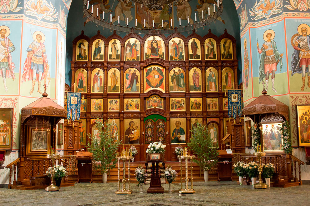По средам после вечерни нараспев поется акафист перед Иверской иконой Божией Матери афонского письма – главной святыней монастыря.