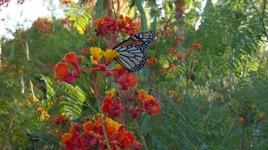 Поскольку здесь в пустыне сухо и жарко, то практикуется так называемое капельное орошение, когда под каждый кустик и дерево подводится пластиковая трубочка, на конце которой укреплен специальный пропускник – ирригатор, рассчитанный на определенное давление в системе и пропускающий определенное количество жидкости: 0,5 галлона, 1 галлон, 2 галлона и т.д. Вся система разборная. Основные магистральные трубы проложены в земле и подведены к цистернам с водой. Вода проходит через специальные программируемые моторы, которые перегоняют воду и создают давление в системе. Все очень хорошо рассчитано, так что определенные виды деревьев и растений получают строго определенное количество воды и в определенное время, которое задается на пультах управления.