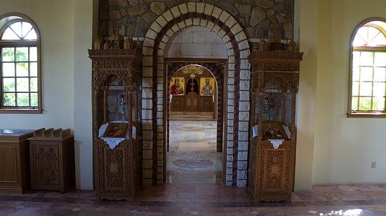 Интерьер главного храма в честь прп. Антония и свт. Нектария