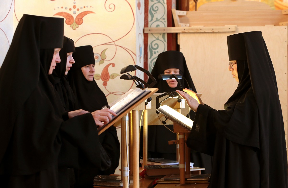 Клирос в нашей обители является постоянным общим послушанием – поют все, кто может, независимо от способностей, которые, вообще-то, есть у всех. Присутствуя на клиросе, легче всего научиться разбираться в церковном Уставе, молитва становится осмысленной.