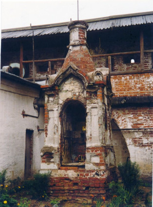 В то время главные ворота монастыря, что под колокольней, были закрыты, а для проезда служили другие – юго-западные; там же у ворот была и проходная. Этот кирпичный домик и сейчас существует. Через него был сквозной проход по пропускам на улицу. Всех живущих на территории «трудовой колонии» охрана хорошо знала и пропускала так. А вот для того, чтобы попасть к нам в гости, нужно было заранее заказывать пропуск и встречать лично.