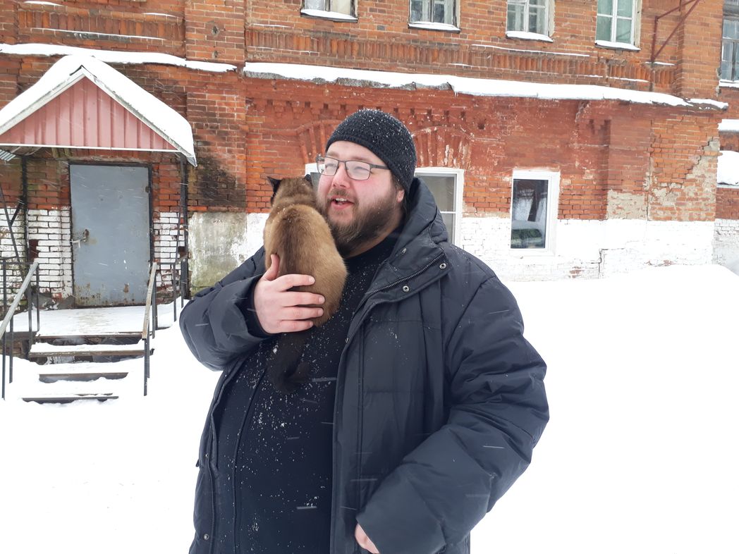 …В монастыре навстречу нам вышел сиамский кот по кличке Оби – верный друг монаха Паисия (Отводчикова): встречает его со службы, провожает на трапезу. Отец Паисий – келарь, и еще несет многочисленные послушания: водит экскурсии, является аптекарем, библиотекарем. Братия немногочисленна, поэтому, по словам отца Паисия, никто без дела не прохлаждается. Отец Паисий уже 12 лет подвизается в монастыре, при этом он самый молодой из братии. После его прихода новыми кадрами обитель не пополнялась. Уменьшается же естественно – из-за того, что насельники уходят в лучший мир…
