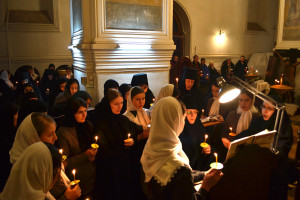 В монастыре с самого первого дня было правилом полностью совершать суточный богослужебный круг. Все сестры, не занятые на неотложных послушаниях, молятся в храме на Литургии.