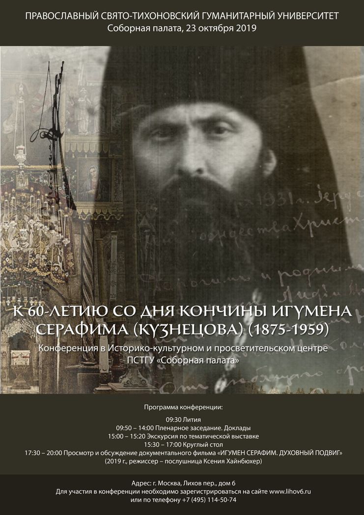 «Такие люди являются исторической вехой для мира», – эти слова, сказанные в свое время одним из иерархов Иерусалимской Православной Церкви о русском игумене Серафиме (Кузнецове), стали лейтмотивом конференции, посвященной 60-летию со дня кончины подвижника. Форум прошел в Историко-культурном центре «Соборная палата» Православного Свято-Тихоновского гуманитарного университета, собрав участников из разных уголков земли от Урала до далекого американского города Сан-Франциско.
