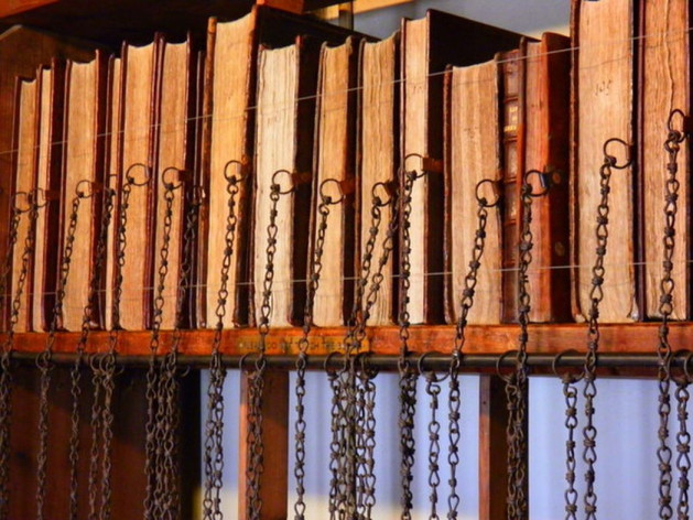 е. Одна из четырех сохранившихся в мире средневековых цепных библиотек. Расположена над ризницей хора. В ней хранится более 400 книг, а также собрание нот церковной музыки. Это вторая по величине цепная библиотека в стране (крупнейшая находится в кафедральном соборе города Херефорд).