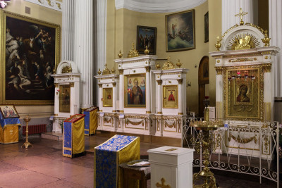 Образ Божией Матери «Невская Скоропослушница» помещен в отдельном киоте слева от алтаря. Икона прекрасно украшена, в киоте – многочисленные благодарственные приношения от тех, кому Божия Матерь явила свою милость.