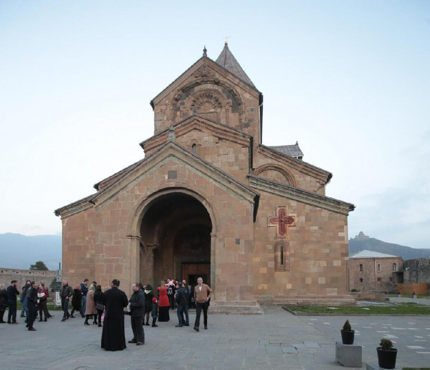 В этом убежден наместник монастыря в честь святого великомученика Георгия Победоносца, настоятель кафедрального Патриаршего собора Светицховели архимандрит Серафим (Чедия). Почему? Потому что город Мцхета, расположенный неподалеку от Тбилиси, был древней столицей Грузии, и его из-за большого количества святых и культовых мест многие христиане именуют «Вторым Иерусалимом». Здесь хранится одна из величайших святынь христианского мира – Хитон Господень, и сюда принесла благую весть святая равноапостольная Нина (Нино Каппадокийская). Официальное название кафедрального собора – собор во имя Двенадцати апостолов Христовых. А второе – Светицховели – переводится как «Животворящий столп». Немногочисленная братия новообразованного монастыря, появившегося около 25 лет назад, объясняет паломникам, откуда такое светлое, жизнеутверждающее название взялось, что за ним стоит.