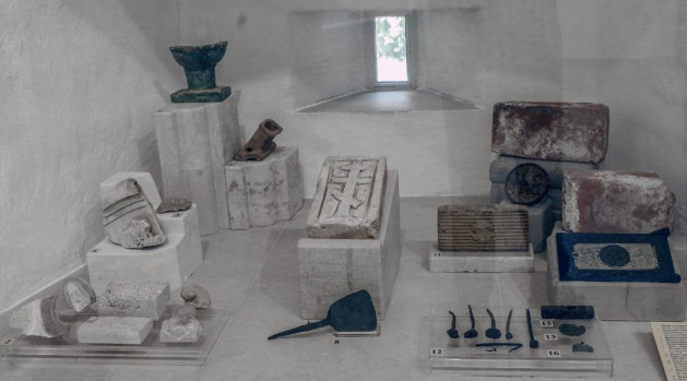 Экспонаты музея кропотливо собирались еще со времен проведения раскопок на территории монастыря в начале 2000-х годов. Помимо закладного камня можно увидеть здесь и кирпичи основной кладки храмов и крепостной стены конца XVI – начала XVII веков. Это достаточно внушительных объемов глыбы, которые монахи тогда носили вручную. Есть тут и образцы кирпича уже собственного производства – в XIX веке у монастыря появился свой кирпичный завод. Еще при Петре I введено было обязательное клеймение кирпичей, по которому можно было бы определить производителя. По печати «Владычний монастырь» были отобраны и эти образцы. Тут же можно увидеть чугунный, добротный, а оттого хорошо сохранившийся мастерок еще XVI века. Образцы гвоздей от самого основания монастыря в XIV веке и до его разорения, так что можно проследить, как этот атрибут менялся от века к веку.