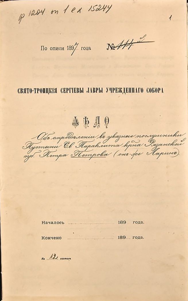 «Помещения бывших монастырей в Сергиевском уезде использованы: <...> “Параклит” сельхозартель бывших монахов <...> Помещения 5 монастырей, занятые сейчас сельхозартелями, в случае их ликвидации (вопрос о ликвидации находится в стадии разрешения) будут использованы для нужд УИК <...>