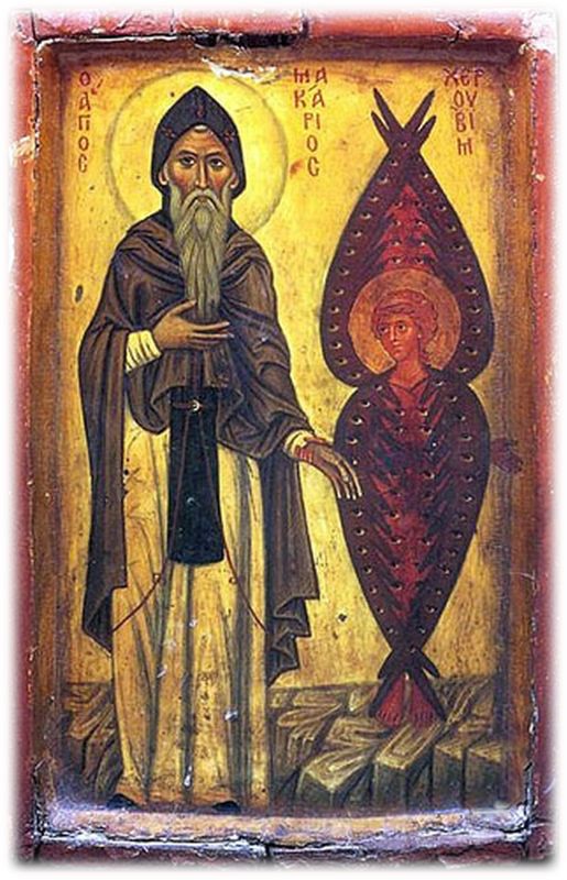 Итак Макарий уходит в Скит, и там постепенно вокруг него собираются отшельники. Они начинают поучаться от словес святого Макария, которого со временем стали воспринимать как некоего духовного преемника и собирателя словес святого преподобного аввы Антония. Надо сказать, что Макарий просиял как духовник, будучи еще в молодых летах. Ему еще не было сорока лет, как его уже стали называть «старцем-отроком». В 40 лет он был посвящен в священный сан, стал пресвитером и был поставлен священнослужителем и настоятелем иноков, живших в Скитской пустыни. В этом же возрасте, согласно преданию, он получил дар чудотворения и пророчества, и несколько раз, как мы видим из разных бесед, воскрешал умерших. При этом случаи были самые разные. Был такой случай, когда он хотел воскрешением умершего убедить еретика в существовании воскресения мертвых. Был даже такой интересный случай, когда он нанялся собирать урожай на поле к одному из крестьян (святой Макарий, игумен Скитской пустыни, нанялся к крестьянину убирать урожай!..), а с ним рядом шла какая-то бедная вдова и долго плакала. Он обернулся к ней, спросил: «Почему ты плачешь?» Она говорит ему: «Умер мой муж, и мы не знаем, где он спрятал наше достояние, наше сокровище, а теперь из-за невозможности отдать долги меня с моими детьми продают в рабство». И тогда Макарий на время воскрешает мужа, чтобы выведать, где он, собственно, спрятал эти сокровища; и бедная вдова остается на свободе... И таких примеров существует много. Один раз некие грабители убили человека, и Макарий заставил мертвеца заговорить, сказать, кто его убил, – чтобы невинно осужденного спасти от смерти…