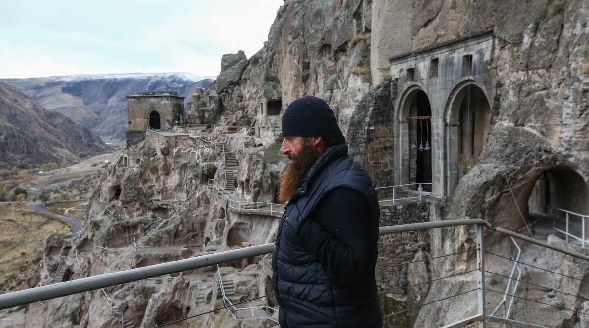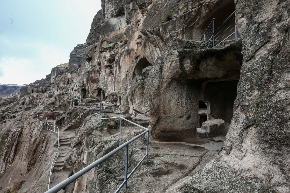 История монастыря берет свое начало в XII веке, когда грузинский царь Георгий III понял, что для защиты Грузии ему необходимо иметь на границе с Персией и Турцией хорошо укрепленную крепость. Он долго искал подходящее место, и Господь привел его к горе Эрушети (Медвежья гора). Ее отвесная стена, обращенная к долине реки Куры, была сделана из туфа (легкая и пористая горная порода – Ред.) и идеально подходила для создания подземного города. По приказу царя в Эрушети начали вырубать пещеры. Причем делали это поистине с царским размахом! Вдоль берега реки в сердце горы прорубили свыше 600 помещений, связав их между собой запутанными ходами и галереями. Из подземного города-крепости на поверхность вели лишь три скрытые от глаз входа. При необходимости долгую осаду под горой могли бы выдержать порядка 20 тысяч человек! Здесь всё было приготовлено для нормальной жизни: помещения для сна и отдыха, хранилища еды и резервуары с водой, трапезные, бани, библиотеки…