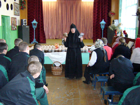 Особым социальным служением для монастыря уже почти десять лет является окормление Арзамасской воспитательной детской колонии на Высокой горе, расположенной на окраине Арзамаса, на месте основанного в XVIII веке мужского монастыря. За это время сложились добрые отношения: администрация колонии заинтересована в духовной помощи, которую оказывает монастырь, и ребята чувствуют неподдельную любовь и сострадание тех, кто принимает участие в их судьбах. Сестры ведут беседы с воспитанниками о вере, Крещении, исповеди и других церковных Таинствах, смотрят вместе с ними фильмы духовного содержания… В 2014–2016 годах состоялись три паломнические поездки в Свято-Троицкий Серафимо-Дивеевский монастырь. В праздники Пасхи и Рождества Христова монастырь организует для заключенных ребят концерты детей из воскресной школы. Тех, кто по достижении восемнадцати лет переводится во взрослые тюрьмы, сестры продолжают окормлять и там. Ведется активная переписка – около восьмисот человек пишут в обитель о своих искалеченных судьбах, и о первых шагах в православии.
