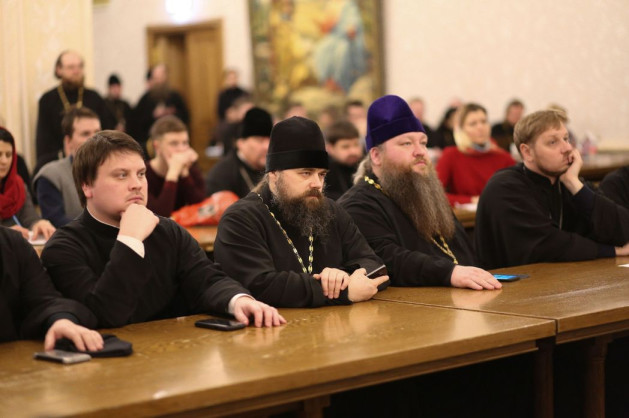 Говоря о роли Церкви в современном информационном пространстве, он заострил внимание на вопросе: что мешает церковным людям противостоять распространению той информации, с которой они мировоззренчески не согласны, нравственно не согласны? Ответ очевиден: спячка, инертность. Слишком слабая поддержка друг друга. Было приведено несколько наглядных примеров, вот один из них: есть живой очень качественный Телеграм-канал «Приходы». У него 837 подписчиков. А должны быть тысячи… Председатель Синодального отдела подчеркнул мысль, высказанную им накануне нынешних Рождественских чтений в интервью корреспонденту ТАСС: мессенджеры набирают обороты. Многие люди, в первую очередь молодые, вообще переходят на данный способ получения информации. «Значит, это то поле, в котором мы должны быть», – заключил он. Кстати, и в интервью ведущему государственному информационному агентству России, и на этой встрече в Храме Христа Спасителя Владимир Легойда обратил внимание на замечательный Телеграм-канал, который ведет ректор Московской духовной академии архиепископ Верейский Амвросий. Подписчиков у него 2,5 тысячи, хотя в академии и семинарии обучается около 800 человек. Но ректора читают не только семинаристы и студенты. В числе подписчиков и те люди, которым интересно, как учащиеся Московских духовных школ живут. Их подкупает личностная интонация владыки. «Как только появился Телеграм-канал архиепископа Амвросия, я его опубликовал. Когда несколько дней назад открыл свой Телеграм-канал «Семинариум» ректор Курской духовной семинарии архимандрит Симеон (Томачинский), я тут же постарался его продвинуть. Иного отношения друг к другу быть не может», – подытожил Владимир Романович.