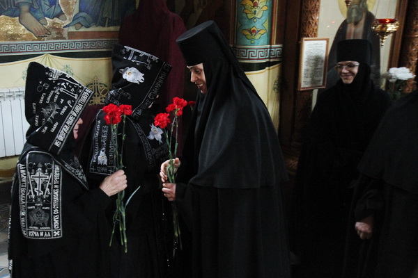 В праздничный день благочинная обители монахиня Кириена от имени всех сестер поздравила схимонахиню Евдокию, а также сестер и прихожан, которые пережили тяжелые военные годы.