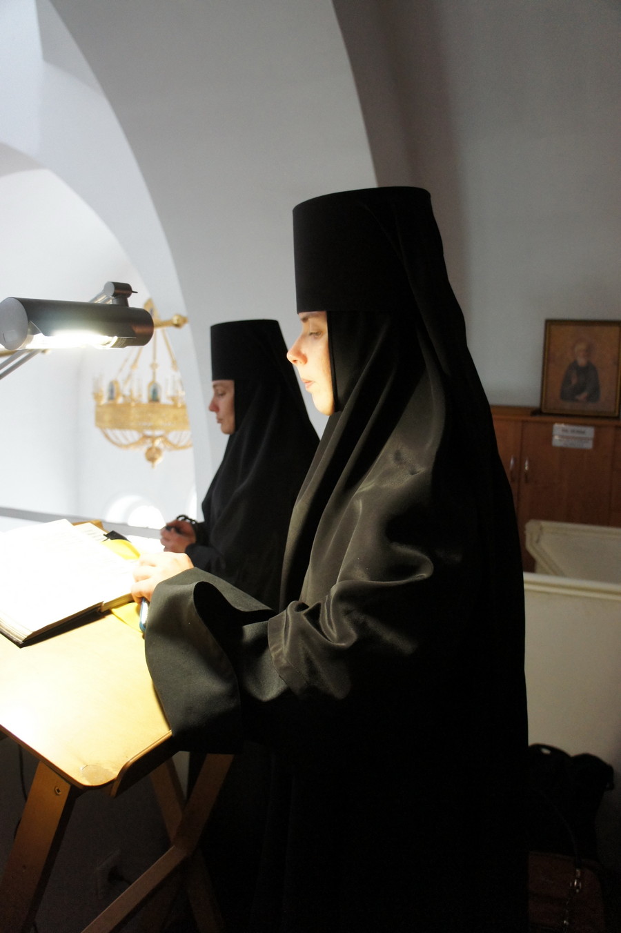 Возрождается и монашеская жизнь обители. Пока здесь живет всего пять сестер во главе с матушкой – игуменией Митрофанией (Миколко). День сестер начинается с молитвы и кончается молитвой. Утреннее и вечернее правило насельницы читают вместе. Литургия в монастыре служится два раза в неделю. Все сестры обучены уставу, поэтому, когда нет Литургии, чередная сестра после утреннего правила читает службу мирским чином, а остальные идут на послушания – на кухню и на коровник: в хозяйстве есть две коровы, теленок и куры. Общая же канва дня такова: подъем, утренние молитвы, служба, завтрак, послушания, обед, чтение кафизм, послушания, вечерняя служба, чай, вечернее молитвенное правило, отбой. В монастыре читается Псалтирь, и за каждой сестрой закреплены определенные кафизмы, которые она читает в назначенные для этого часы.