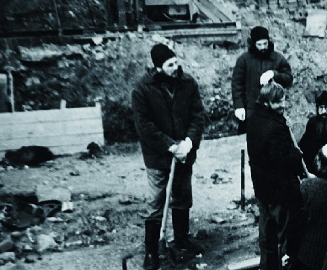 Еще помню, что иеромонах Василий исполнял послушание экскурсовода. Сохранились фотографии, где он, закутанный в мантию, рассказывает что-то паломникам. Разные вопросы задавали паломники. Однажды кто-то спросил: “Для чего в таком небольшом монастыре так много храмов? Да и вообще, разве нельзя молиться дома? Вот у меня, например, Бог в душе”. И он деликатно ответил: “Конечно, Бог везде, и, конечно, Богу можно помолиться и дома. Дух дышит, где хочет и не мерою Бог дает духа. Но молиться самому – это как грести в лодке, плывя по морю. А молиться в храме с братией – это словно плыть на большом корабле”. Мне так понравилось это сравнение, что я без конца на проповедях вспоминаю его. Ведь это очень точно замечено: стоит только прийти в храм, и соборная молитва помогает настраивать ум и сердце на духовный лад.