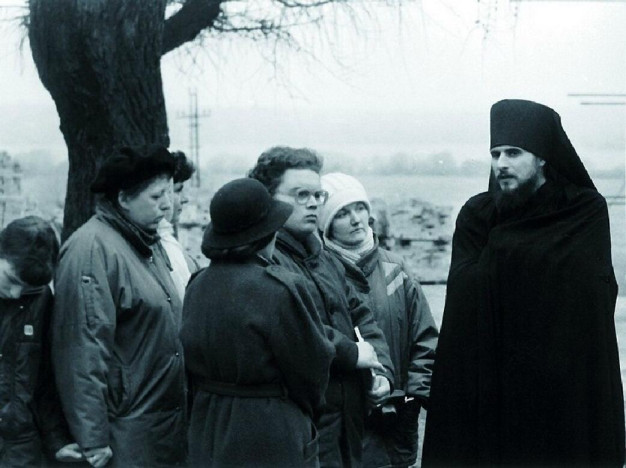 «Помню, как летом 1988 года в возрождающуюся Оптину начали приезжать паломники, вокруг монастыря в палатках жила молодежь. И для нас остро встал вопрос о том, где мы могли бы начать крестить желающих. Времена были еще советские, крестили только в приходских храмах, в Оптине не крестили. И мы взяли благословение у наместника, архимандрита Евлогия крестить народ в Пафнутиево-Боровском источнике. Тогда это был сруб, размером три на три метра. Воду черпали из него открытым способом.